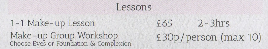 Discover the magic of make-up. If you would like to find out how to use your make-up differently or are not sure what suits you, then a make-up lesson would a great way of getting a step by step guide to achieve this. Bring your make-up case and together we can explore how to use it differently and introduce you to new fashions and helpful tips. The session will last approximately 3hrs.